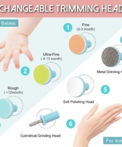 - تتضمن العبوة: 1x ماكينة تشذيب أظافر الأطفال الكهربائية، 6x رأس حفظ قابل للتبديل، 1x حقيبة تخزين