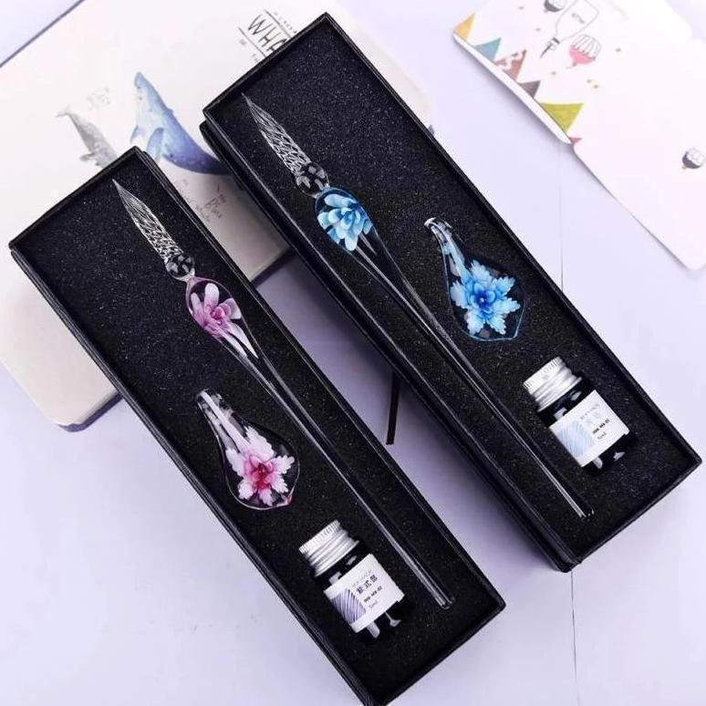 1*مجموعة أقلام الخط الزجاجية مع الحبر ومسند القلم