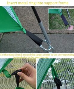 تتضمن العبوة: 1x شبكة جسم، 2x أعمدة من الألياف الزجاجية، 1x قطعة قماش مستهدفة، 4x أوتاد أرضية
