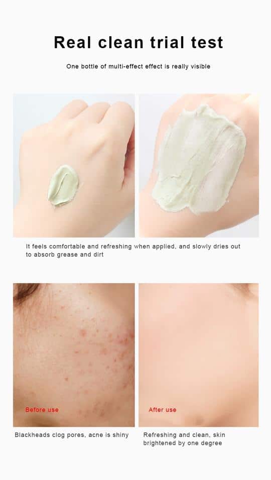 يساعد قناع طين الشاي الأخضر الخاص بنا على تقليل عيوب البشرة والاحمرار وحب الشباب والرؤوس السوداء، كما تساعد خاصية الماتشا المضادة للالتهابات أيضًا على تقليل الاحمرار والالتهاب الناتج عن حب الشباب. - محاربة الشيخوخة: