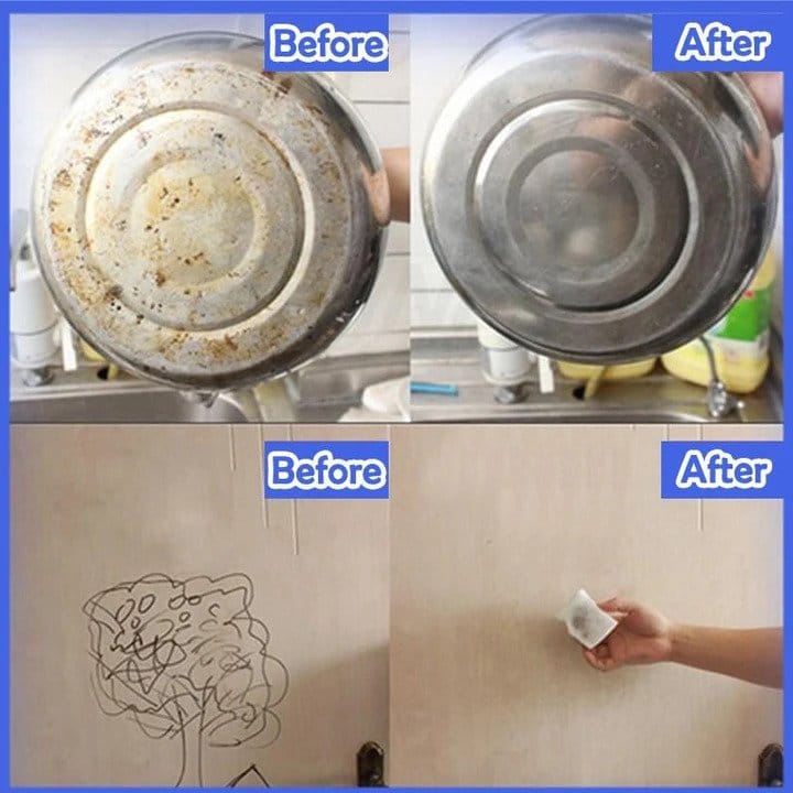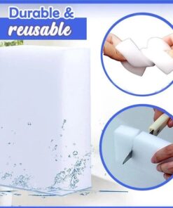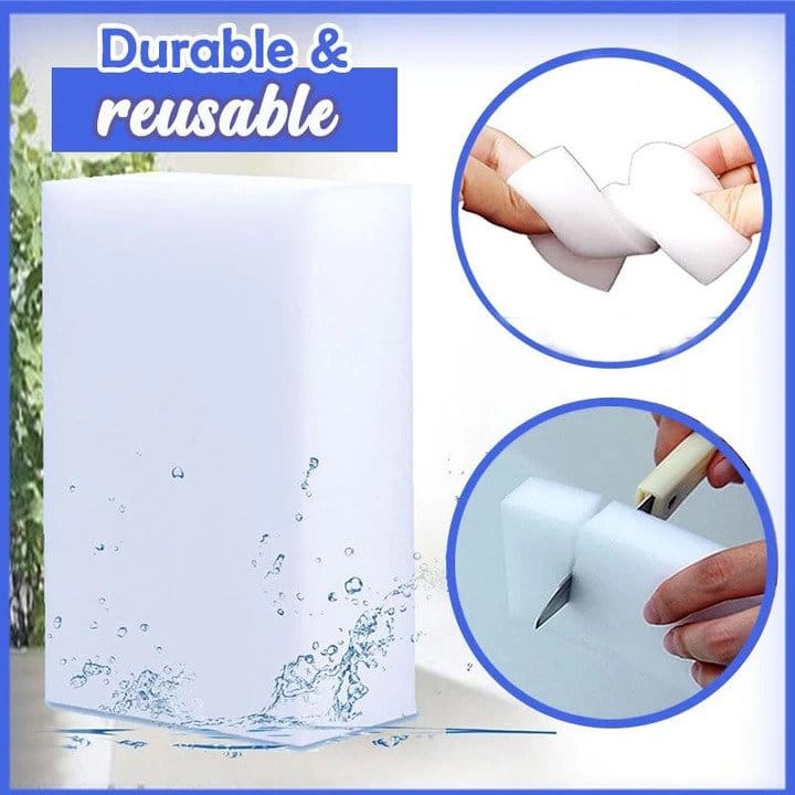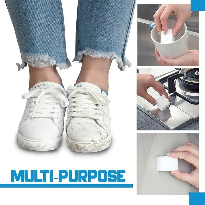 يمكن تنظيف البلاط وأدوات المطبخ والحوض والأثاث الجلدي والأبواب والجدران والبلاستيك والزجاج والأحذية والألعاب والمزيد باستخدام إسفنجة الممحاة السحرية هذه.