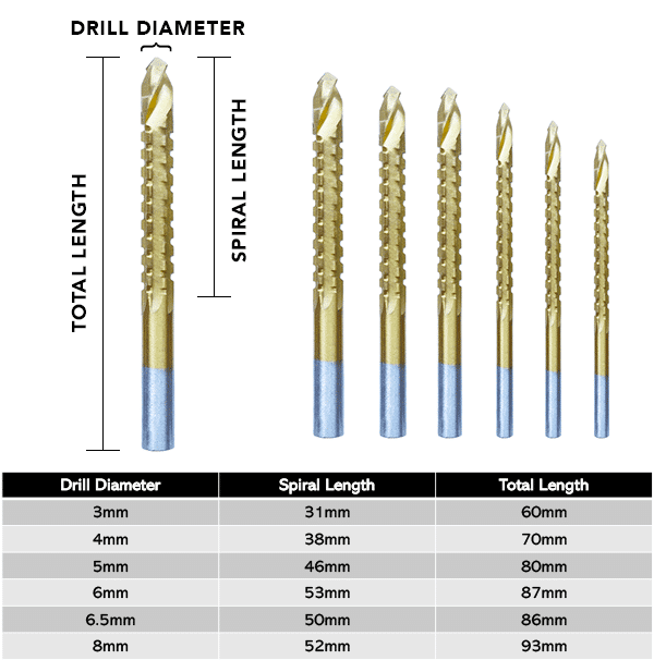 مجموعة لقم الثقب (3/4/5/6/6.5/8 مم)