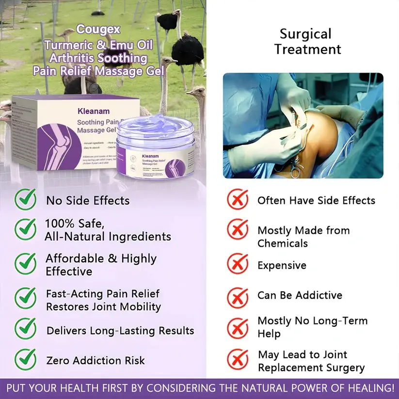 ✅ مكونات طبيعية قوية – تم تركيبه من الكركم العضوي وزيت الإيمو النقي لتقليل الالتهاب وتليين المفاصل وتعزيز الشفاء على المدى الطويل. معتمد من الخبراء – موثوق به من قبل متخصصي تقويم العظام للحصول على راحة آمنة وفعالة.