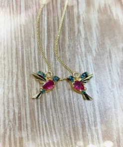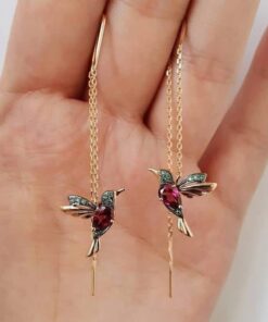 تحتوي الأقراط المرصعة بحجر الراين على شكل الطائر الطنان للسيدات على ميزات المنتج التالية: