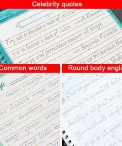 - هذا كتاب كتابة باللغة الإنجليزية بقلم الكتابة. وهو يركز على التدريب على مهارات الكتابة، مما يمكّن القراء من فهم مهارات الكتابة اليدوية باللغة الإنجليزية من خلال التدريب وكتابة كلمات إنجليزية جميلة.