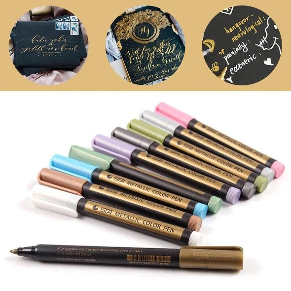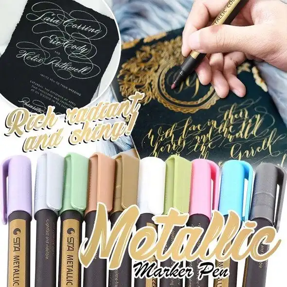 أقلام ماركر معدنية (10 قطع) تحتوي على ميزات المنتج التالية: