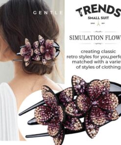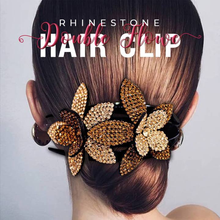 مشبك شعر على شكل زهرة مزدوجة من حجر الراين