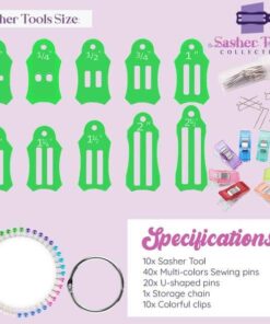 10x أداة ساشر , 40x دبابيس خياطة متعددة الألوان , 20x دبابيس على شكل حرف U , 1x سلسلة تخزين 10x مقاطع ملونة