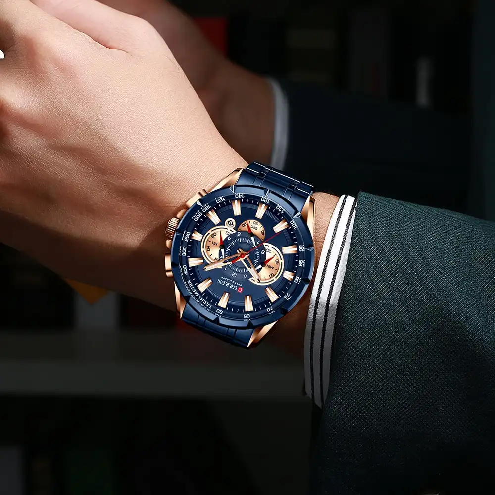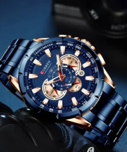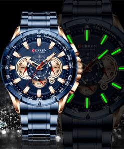 مادة الهيكل: سبيكة عالية الجودة قطر الهيكل: 48 ملم سمك الهيكل: 14 ملم مادة السوار: الفولاذ المقاوم للصدأ طول السوار (يشمل العلبة): 240 ملم عرض السوار: 24 ملم الوزن الصافي: 172 جرام الحركة: حركة كوارتز يابانية أصلية مقاومة للماء حتى 30 مترًا (تدعم السباحة والدش البارد) جميع الأقراص الصغيرة تعمل